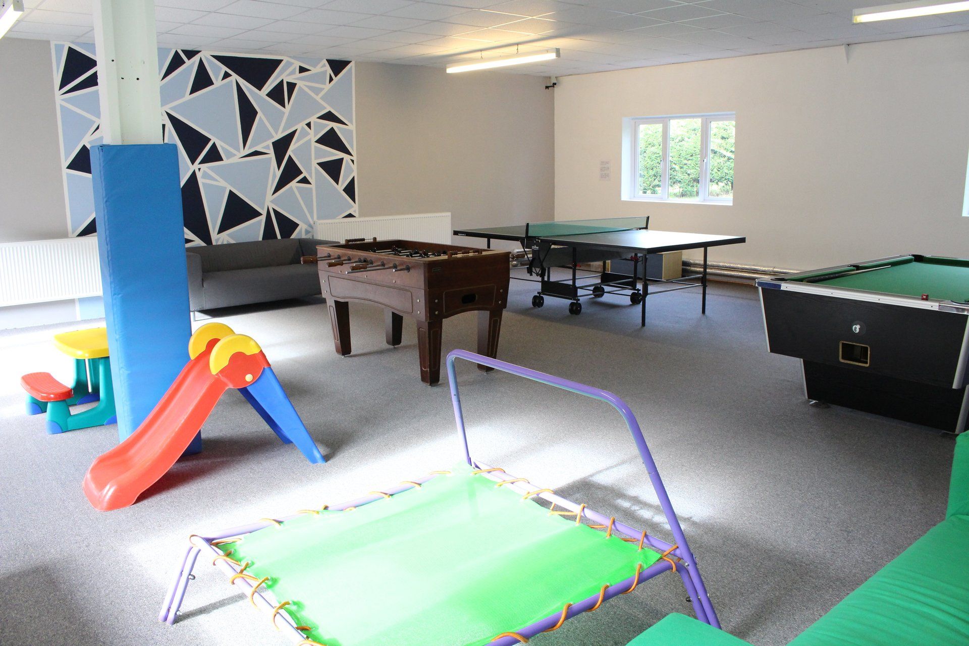 Boasting a variety of equipment Including table tennis table, pool table and young children’s toys.